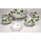 Conjunto de sobremesa em louça Weiss, pintura manual. Bowl: 11x27x27 cm. Tacinhas: 6x12x12 cm. HISTÓRIA: Fábrica de artigos de faiança (louça de pó-de-pedra), criada por Inês Weiss, que aprendeu técnicas de pintura na Fábrica Santo Eugênio, de sua família. A partir da década de 1960 o processo artesanal foi substituído pela linha de produção industrial. A crise econômica na década de 1980 afetou as finanças da fábrica. O problema se estendeu até os anos 1990, quando a empresa não resistiu à concorrência dos artigos importados e faliu, sendo fechada em 1995. FONTE: http://www.porcelanabrasil.com.br/m-weiss.htm