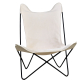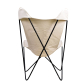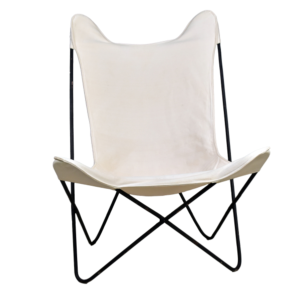 Poltrona BKF A poltrona BKF com acabamento em lona é um design de Antonio Bonet , Juan Kurchan e Jorge Ferrari-Hardoy . Criada em 1938, seu nome vem das iniciais de seus designers: Bonet , Kurchan e Ferrari ( BKF ), também conhecida como cadeira Borboleta .
