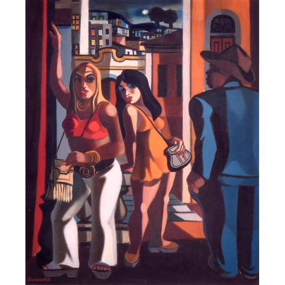 Fernando Clóvis Pereira — conhecido no circuito como Fernando P. — nasceu em São Luís (MA) em 1917 e morreu no Rio de Janeiro em 2005. Formado inicialmente na Escola de Aprendizes Artífices de São Luís, mudou-se para o Rio de Janeiro em 1939, onde trabalhou como ajudante no atelier de Tomás Santa Rosa (que o apelidou “Fernando P.”) e começou a integrar a cena moderna carioca. A partir de 1943 passa a figurar na divisão moderna do Salão Nacional de Belas-Artes; em 1952 recebeu o Prêmio de Viagem ao Estrangeiro do 2º Salão Nacional de Arte Moderna do MAM/RJ, que o levou a Paris (1953–54). Em Paris estudou na Académie Julian e com André Lhote; estudou gravura e mosaico com Gino Severini — experiências que o aproximaram do espírito cubista, sem anular seu foco em temáticas brasileiras. Após o retorno ao Brasil colaborou com Emiliano Di Cavalcanti na execução de painéis (1957–1960) e participou ativamente de salões e bienais (incluindo a 1ª Bienal de São Paulo, 1951, e edições posteriores). Em 1983 teve uma “sala especial” no MAM-Rio; em 1987 recebeu o título de Cidadão do Estado do Rio de Janeiro; em 1998 realizou sua última individual em vida na Galeria Paiva Frade. Em 2009 houve grande retrospectiva curada por Alexandre Paiva Frade no Gabinete de Arte da Câmara dos Deputados / Museu da Câmara.
