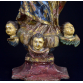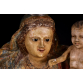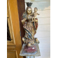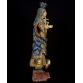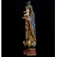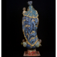 IMAGEM DE VULTO: N. Sra. DO ROSÁRIO, BAHIA, SÉCULO XVIII. Composição Barroca com menino; sobre nimbo um trio de anjos, entre asas. Cabeleira em pronunciadas madeixas. Olhos de vidro somente na Santa. Complexo e movimentado panejamento no véu e no manto: pintura floral, sobre bases azul e vermelha. Parte posterior do véu aberta em leque. Túnica cinturada e cintada. Excepcional policromia original e ouro. Base piramidal com cantos recortados, na cor encarnada. Menino:17x11x6 cm. 64x28x19 cm. Altura total com coroa prata: 70 cm. (5x8x8 cm.). PESO TOTAL: 7 KG