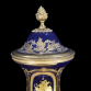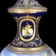 SÉVRES- FRANÇA SÉCULO XIX ÂNFORA AZUL COBALTO, PINTURA EM 360 GRAUS, ASSINADA "L. BERTREN". CENA GALANTE, TRÊS FIGURAS, UMA DAS MOÇAS COM COROA DE FLORES. MONTURE EM BRONZE ORMOLU. MEDIDAS: 83X30X30 CM. PESO: 8.285 KG.