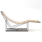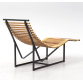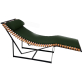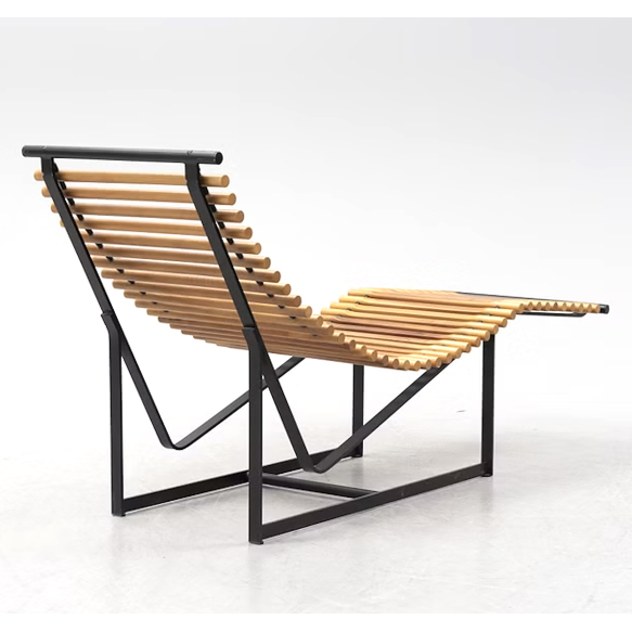 Uma chaise longue escultural única, desenhada por Peter Strassl. Desenhada para a exposição da Kunsthaus de Munique em 1978. Estrutura em aço preto com assento em madeira maciça em formato de espinha dorsal e almofadas. Esta elegante chaise longue apresenta barras de madeira maciça que criam uma aparência esquelética e harmoniosa que irradia estabilidade e graça. Medidas: – Altura: 85 cm – Largura: 52 cm – Profundidade: 160 cm Reestofada com um assento de couro pelica verde escuro e está em excelente estado de conservação, com leve pátina devido à idade.