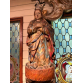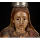 N.SRA. DOS DORES AJOELHADA, MINAS GERAIS, Século XIX. Maciça composição em monobloco, mãos cuzadas sobre o peito, expressão dolorosa e de conformidade plena:sobrancelhas vincadas e profunda implantação dos olhos de vidro. Movimentado panejamento debruado, cai numa laçada sobre o braço esquerdo. Pousa sobre pedregulhos e base ovalada, marmorizada, faiscada e encarnada. MEDIDAS:68x30x29 cm. Medida da coroa:20x11x13 cm. Altura total com coroa:87 cm. PESO TOTAL: 16,350 KG