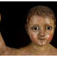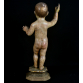 MENINO DEUS- MINAS GERAIS, Século XVIII. Imagem volumosa de talha erudita, farta proporção, nudez aparente. Entalhada, carnada e poicromada. Rosto vívido, sobrancelhas bem marcadas e vincadas, covas, olhos amendoados com vidro implantado. Destra que abençoa, perna flexionada, dobras. Base escalonada, marmorizada e faiscada. MEDIDAS:66x41x21 cm. PESO TOTAL: 5 KG