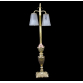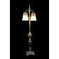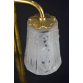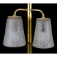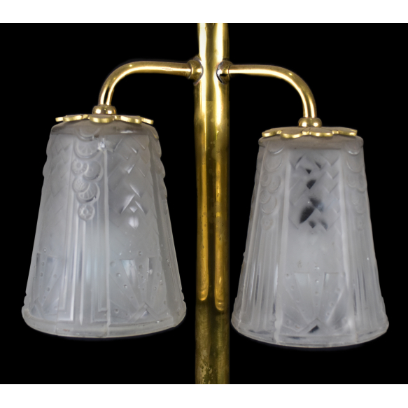 MULLER FRERES - LUNEVILLE. Luminária para duas luzes, cúpulas em "Frosted Glass" de motivo geometrizado. Base em bronze dourado e cobre, trabalhados em relevo. Altura: 86cm.