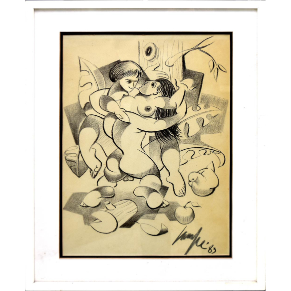 LAERPE MOTA (1933) "ERÓTICO" DESENHO A GRAFITE, 1983. Medidas: 44 x 31 cm. Com moldura: 56,5 x 43,5 cm.