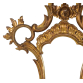 Excelente espelho de parede rococó, Itália, provavelmente Veneza, dos meados do século XVIII ao XIX. Moldura vazada altamente dinâmica, feita de madeira entalhada e dourada, desenvolvida a partir de elementos rococós, conchas, pássaros, flores, volutas e motivos florais. Painel central de espelho antigo que lembra cartelas heráldicas. Moldura é coroada por uma reserva vazada em rococó, montada sobre volutas.