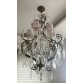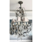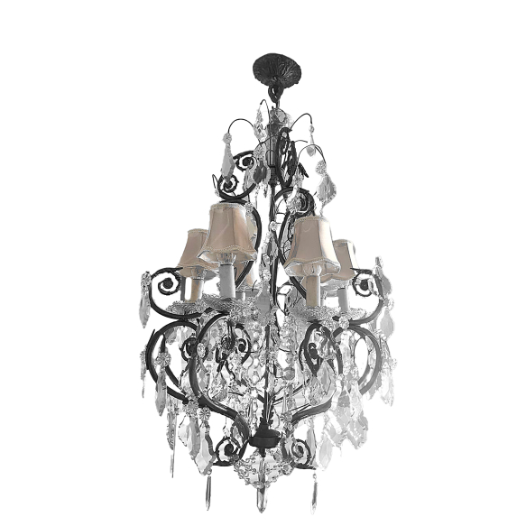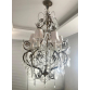 Lustre francês de seis luzes, braços, ondulações e recamado de folhagens em metál. Pendentes em placas e correntes de cristal BACCARAT de varias lapidações. "Bobèches" no padrão bico de jaca e cúpula em tecido. Med. 126 x 76 cm