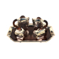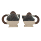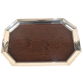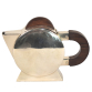 BAIXELA ART DECO para chá e café, com formato inspirado na "Escola Bauhaus", formato circular e geométrico, alças em jacarandá. 4 peças mais bandeja oitavada com alças em Silverplated, borda alta. Manufatura nacional, já extinta: Magna Prata, marcada: 54 GRS. Década de 1950. Altura máxima: 20 cm. Medidas da bandeja: 60 x 41 cm.