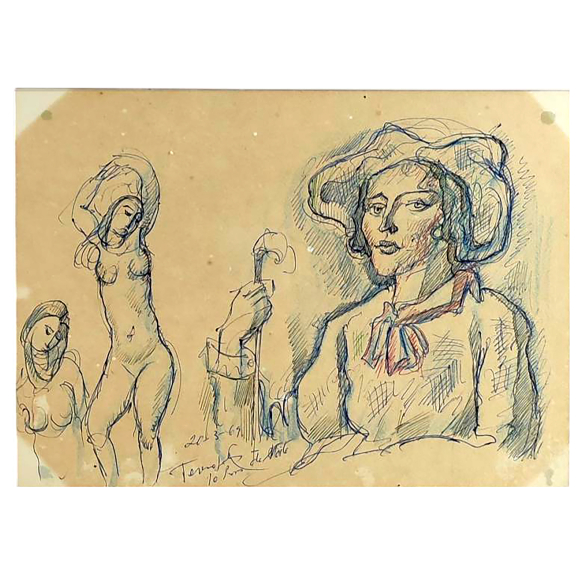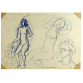 HENRIQUE CAVALLEIRO (1882-1975) ASSINADO E DATADO: 20/03/1969 DESENHO FRENTE E VERSO EM CANETA ESFEROGRÁFICA AZUL E TRICOLOR. MEDIDAS: 22 X 31 cm./ MOLDURA DUPLA FACE EM "SANDUICHE DE VIDRO" .....cm.