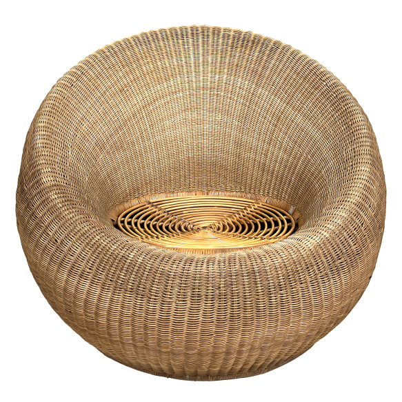 Esta cadeira de rattan foi desenhada por Isamu Kenmochi em 1960 para o "Hotel New Japan", um pioneiro dos hotéis modernos. Este modelo, oferece conforto visual e funcional, materiais de alta qualidade e acabamento impecável em círculos concêntricos para formar o corpo da poltrona inspirado em ninhos de pássaros. Existem relativamente muitos modelos de poltronas de descanso, e entre elas, as do tipo "ninho de pássaro" são as mais aconchegantes.