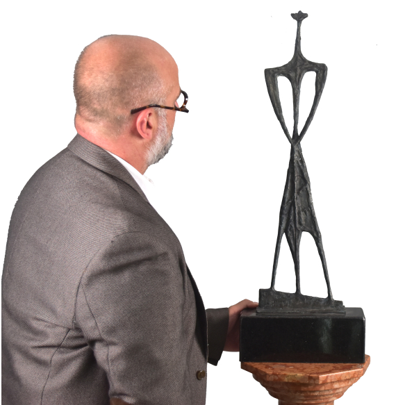 A escultura Guerreiro é um exemplar marcado por uma dinâmica abstrata, com figura delgada e vertical, onde os vazios predominam sobre as massas, refletindo a evolução do estilo do artista na década de 1950.