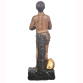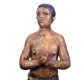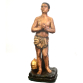 Imagem de SÃO MANUEL , antiga escultura em gesso policromado. O Santo é apresentado em sua postura de martírio de mãos postas com olhar fito aos céus. Cravos saem-lhe pelas orelhas e mamilos. O elmo aos pés, lembra sua posição de soldado. Assente sobre base simulando relva. Medidas: 30 x 11 x 10 cm.