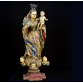 IMAGEM DE VULTO: N. Sra. DO ROSÁRIO, BAHIA, SÉCULO XVIII. Composição Barroca com menino; sobre nimbo um trio de anjos, entre asas. Cabeleira em pronunciadas madeixas. Olhos de vidro somente na Santa. Complexo e movimentado panejamento no véu e no manto: pintura floral, sobre bases azul e vermelha. Parte posterior do véu aberta em leque. Túnica cinturada e cintada. Excepcional policromia original e ouro. Base piramidal com cantos recortados, na cor encarnada. Menino:17x11x6 cm. 64x28x19 cm. Altura total com coroa em prata finamente cinzelada e vazada: 70 cm. (4,5x5x8 cm.). Peso;43 g. ALTURA TOTAL: 70 cm. PESO TOTAL: 7 KG