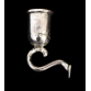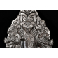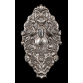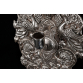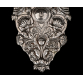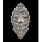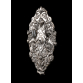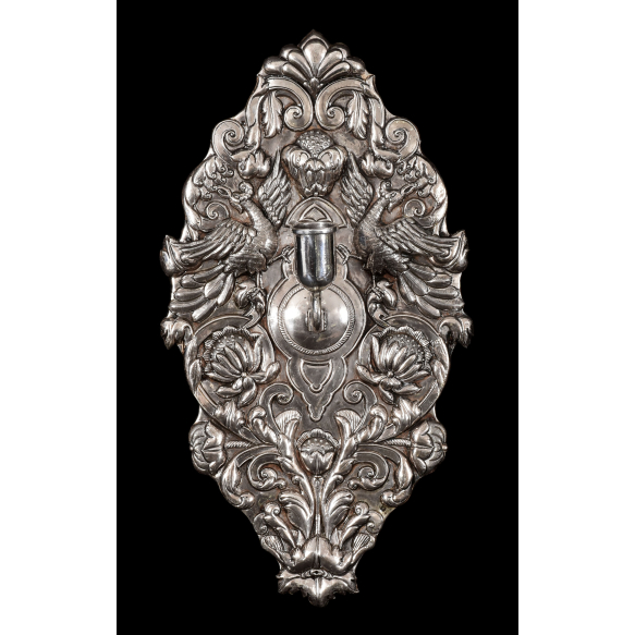 HANAU - GERMANY, SÉCULO XIX*. Candeeiro de parede. Prata rebatida pelo anverso, cinzelada e guilhochada. Luxuriante relevo fitomorfo em espelhamento, par de aves fênix afrontadas em simetria, no penacho Palmeta entre volutas. No eixo de simetria, castiçal para uma vela em encaixe. Fundo em madeira. *Atribuída por estilo, figurações e fatura, marcas não constam. Medidas: 42,5 x 23 x 9 cm.