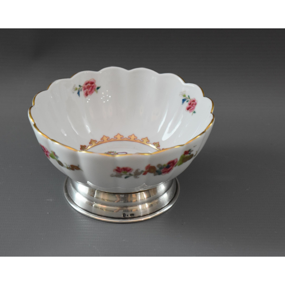 Bowl "NG" - Porto- Portugal (réplica Cia das Índias), base em prata 925 mls. contrastada*. Policromia figurando Brasão da Dinastia de Bragança. 7x12x12 cm. *Marca contemporânea a partir de 1985. página 421, volume 2. Marcas- Imprensa Nacional- Casa da moeda.