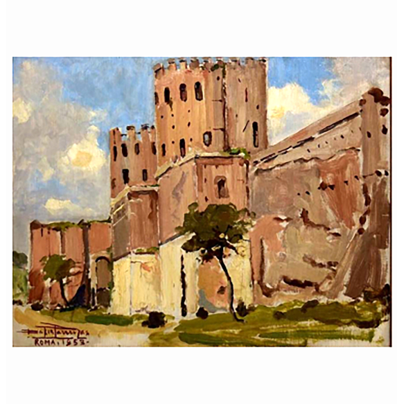 DAKIR PARREIRAS (Niterói, RJ 1894-1967) ASSISTA O VIDEO Medidas: 33 X 41 cm. Paisagem de Roma, datado e localizado, Roma 1953.Foi em 1911 que o mundo teve o primeiro vislumbre do gênio de Parreiras, quando expôs pela primeira vez na prestigiosa Exposição Geral de Belas Artes, conquistando uma merecida menção honrosa. Mas seu destino estava apenas começando a se desdobrar, levando-o além das fronteiras brasileiras até os salões da renomada Académie Julian em Paris, onde refinou ainda mais seu domínio das artes. De volta ao Brasil, em 1913, Parreiras embarcou em uma jornada multifacetada, encarregando-se da decoração dos navios e agências da influente companhia de navegação Lloyd Brasileiro. Sua criatividade e habilidade logo o levaram a novos horizontes, como a Escola Nacional de Belas Artes (Enba), onde, em 1915, expôs ao lado de seu ilustre tio, o mestre Antônio Parreiras. Os reconhecimentos formais começaram a acumular-se, destacando-se a medalha de bronze concedida pela ENBA em 1922, seguida pela medalha de prata em 1930. Mas foi em 1964, em seu último salão, que Parreiras brindou o mundo com sua obra magistral "Canal Grande, Veneza e Mau Tempo", uma síntese impressionante de sua visão única do mundo. Para além das telas, Parreiras deixou sua marca em palácios governamentais, teatros e salões oficiais em São Paulo, imortalizando-se como um dos pilares da arte brasileira do século XX. Sua influência transcendeu as fronteiras do espaço e do tempo, ecoando em galerias e museus em todo o país. Hoje, uma homenagem póstuma celebra a extraordinária jornada de Dakir Parreiras, destacando sua contribuição inestimável para o cenário cultural brasileiro. A exposição "Antônio e Dakir Parreiras: de pai para filho", curada pelo Museu Antônio Parreiras, é um tributo tocante à profunda ligação entre dois mestres, cujas obras continuam a inspirar e encantar gerações futuras.