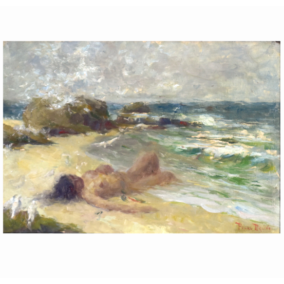 PEDRO BRUNO (1888-1944) "PRIMEIRO ESTUDO PARA O QUADRO MÔEMA". Coleção Benedicto Anselmo Pierotti, Junho 1960. Segundo Cachet no verso. Óleo sobre cedro. MEDIDAS: 35 X 24 CM S MOLDURA E 48,5 X 39 CM C MOLDURA