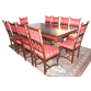 Mesa de jantar para dez convivas. ART NOUVEAU (1890-1910). Madeira maciça, entalhada e colunatas torneadas. Sólida estrutura da base em colunas profusamente decoradas. Assentos refeitos. Medidas: 102 x 46 x 46 cm. (cadeiras), 75 x 230 x 113 (mesa aberta) e 75 x 147 x 113 (mesa fechada).
