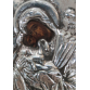 ÍCONE GREGO - THEOTOKOS. imagem pintada em madeira, "Oklad" em prata de lei 950 mls. ricamente repuxada e cinzelada. Montagem em moldura de madeira pintada. Século XX. Medidas: 7,5 x 10 cm.