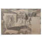 EspañolPORTINARI - Candido (Brodowski, SP 1903 — Rio de Janeiro, 1962) 28x17,5 cm./ 56x45,5 cm. Desenho a grafite. "O batismo de Jesus", 1944 Reproduzido no catálogo raisonné do Projeto Portinari. 2169 FCO1021, volume 3, página 45 “Divina Pastora” [FCO 1013] TEMAS: Religioso:Cenas Religiosas:Batismo de Jesus Religioso:Jesus Religioso:Santos:São João Batista Figura Humana:Grupo:Homens Figura Humana:Figura DESCRIÇÃO: Composição em preto e branco. Linhas de contorno e áreas de sombras. São João batizando Jesus e três pessoas observando a cena. À direita do suporte espaço em forma de retângulo, em branco, correspondente à porta da parede da sala de jantar onde seria realizada a pintura mural. As figuras estão esquematizadas. Ao centro, figura em pé, de frente, com braços abertos. A seu lado esquerdo, São João em pé, de perfil para a esquerda, segura na mão esquerda uma cumbuca que está acima da cabeça de Jesus. Um pouco mais ao fundo, à esquerda, grupo de três figuras em pé, olhando na direção de Jesus e de São João. O fundo e o chão são geometrizados em áreas irregulares esquemáticas claras e escuras, sugerindo morros.