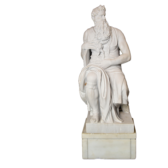 MOISÉS - D'APRÉS MICHELANGELO. ESCULTURA EM BLOCO DE MÁRMORE. MEDIDAS: 72 X 30 X 6 CM BASE: 28 X 15 CM PESO: ESCULTURA 73,300KG / BASE: 28,350 KG