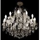 ANTIGO LUSTRE palaciano estilo francês Versailles para 12 luzes em cristal e estrutura em bronze ormolu. Coluna central piriforme e facetada, apoiada em base circular cônica. Braços recurvos realçados por medalhões, encimados por bobeches com velas e reunidos por guirlandas com bolotas e pingentes lapidados. Parte superior com coroa sustentando hastes em volutas ornadas por colares de contas e placas em gotas. Med. altura com a bola de acabamento 75 cm. Diâmetro 79 cm. Adquiridos no antigo antiquário Galeria São Pedro, no Rio de Jardineiro. Acompanha acabamento em bronze cinzelado para o teto com foto anexada.