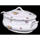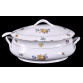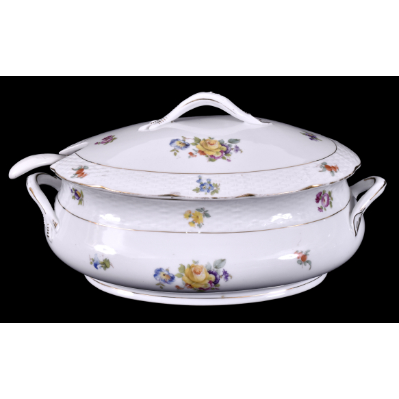 MEISSEN Se você não assistiu esse vídeo, assista. Sopeira ovalada, de porcelana da Manufatura de Meissen, decorada com diversos arranjos florais e fios dourados, policromados manualmente de forma naturalista. Corpo bojudo, com duas alças simétricas opostas e puxador da tampa modelado no formato de tronco estilizado. No reverso da caldeira marcas de identificação: Meissen no interior de elipse encimando estrela, em azul, sobre número 7740 em letra de imprensa preta; segundo Nouveau Dankert - Manuel de la porcelaine européenne, páginas 272 e XVII, registrada no Tribunal Real de Instância em 32.12.1882; Alemanha, séc. XIX / XX. Acompanha concha de porcelana branca, sem marca de identificação. Medidas: 15,5 x 31 x 22 cm.