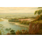 TORRENS, MONTSERRAT S. ( BARCELONA-ESPANHA, 1933-? ) ÓLEO SOBRE TELA. PAISAGEM DOS TRÓPICOS, ICONOGRAFIA ANTICA 92X122 / 116X146X 8 CM.