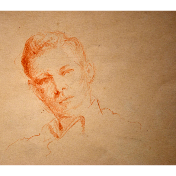 EspañolEDGAR WALTER (1917 – 1994) DESENHO A SANGUÍNEA. "AUTO RETRATO". DÉCADA DE 1950. MEDIDAS: 32 X 22 CM
