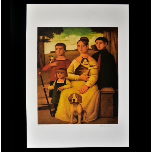 EspañolREYNALDO SERIGRAFIA P/A ASSINADA. MARCA D'ÁGUA: ARTE MAIOR GALERIA (RECIFE) RETRATO DE FAMÍLIA COM CÃO E GATO (A PARTIR DE OBRA DE 2008). MED: 47 X 66 CM.