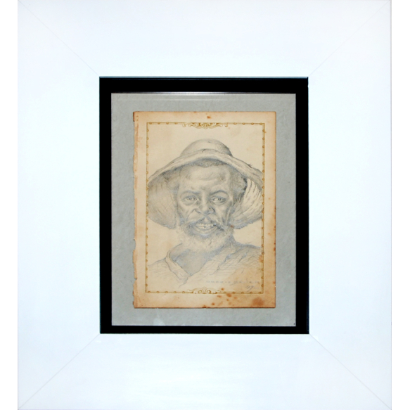 EspañolORÓZIO BELÉM (Sabará, 1903 — Rio de Janeiro, 14 de setembro de 1985) Desenho original a grafite Assinado no c.i.d. e datado (1949) Medidas: 24 x 14 cm. Emoldurado: 42 x 36 cm. ESCOLA NACIONAL DE BELAS ARTES - SEGUNDO QUARTEL DO SÉC XX BIOGRAFIA: Matriculou-se como aluno livre na Escola Nacional de Belas Artes, em 1922, e aí teve como mestres Batista da Costa, Rodolfo Amoedo e Rodolfo Chambelland. Entre seus colegas, estavam alunos que, tempos depois, viriam a destacar-se no cenário artístico brasileiro, tais como Cândido Portinari, Oswaldo Teixeira, Lula Cardoso Aires, Manuel Santiago e Orlando Teruz. Foi professor do Instituto de Belas Artes do Rio de Janeiro e teve um sem número de alunos particulares em seu ateliê. Obra: A tela de sua autoria intitulada Cidade Maravilhosa pertence ao acervo do Museu Nacional de Belas Artes. O tema mais frequente de sua obra é a paisagem, mas destacou-se, também, como retratista de tipos populares, especialmente de negros velhos e outras figuras humildes do povo. Individuais: A principal exposição individual deu-se em 1983, por ocasião da comemoração de seus oitenta anos, na Galeria Maria Augusta, no Rio de Janeiro. Principais coletivas: Salão Nacional de Belas Artes - em 1923; em 1924, com Menção Honrosa; em 1925, com Medalha de Bronze; em 1942, com Medalha de Prata; em 1945, com Prêmio de Viagem ao Estrangeiro; em 1953, com Prêmio de Viagem ao País; e em 1968. Salão Paulista de Belas Artes - em 1939, com Medalha de Prata. Por ocasião de sua viagem à Europa, em decorrência do prêmio obtido no Salão Nacional, expos com êxito, na Espanha e em Portugal. FONTE:https://pt.wikipedia.org/wiki/Orózio_Belém