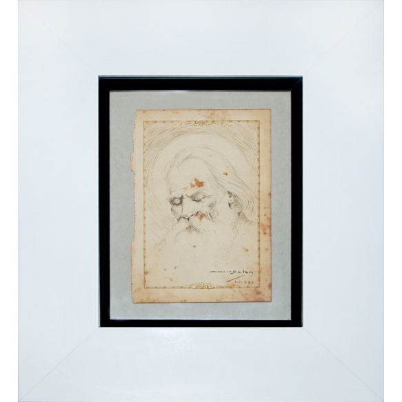 EspañolORÓZIO BELÉM 1903 / 1985 24 X 14 cm./42 X 36 cm. Desenho, bico de pena. "O ancião", 1939. BIOGRAFIA: Matriculou-se como aluno livre na Escola Nacional de Belas Artes, em 1922, e aí teve como mestres Batista da Costa, Rodolfo Amoedo e Rodolfo Chambelland. Entre seus colegas, estavam alunos que, tempos depois, viriam a destacar-se no cenário artístico brasileiro, tais como Cândido Portinari, Oswaldo Teixeira, Lula Cardoso Aires, Manuel Santiago e Orlando Teruz. Foi professor do Instituto de Belas Artes do Rio de Janeiro e teve um sem número de alunos particulares em seu ateliê. Obra: A tela de sua autoria intitulada Cidade Maravilhosa pertence ao acervo do Museu Nacional de Belas Artes. O tema mais frequente de sua obra é a paisagem, mas destacou-se, também, como retratista de tipos populares, especialmente de negros velhos e outras figuras humildes do povo. Individuais: A principal exposição individual deu-se em 1983, por ocasião da comemoração de seus oitenta anos, na Galeria Maria Augusta, no Rio de Janeiro. Principais coletivas: Salão Nacional de Belas Artes - em 1923; em 1924, com Menção Honrosa; em 1925, com Medalha de Bronze; em 1942, com Medalha de Prata; em 1945, com Prêmio de Viagem ao Estrangeiro; em 1953, com Prêmio de Viagem ao País; e em 1968. Salão Paulista de Belas Artes - em 1939, com Medalha de Prata. Por ocasião de sua viagem à Europa, em decorrência do prêmio obtido no Salão Nacional, expos com êxito, na Espanha e em Portugal. FONTE:https://pt.wikipedia.org/wiki/Orózio_Belém