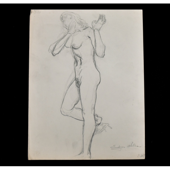 EspañolEDGAR WALTER (1917 – 1994) DESENHO MODELO VIVO MULHER NUA ESCONDENDO O ROSTO. ESTUDO ACADÊMICO, DÉCADA DE 1950. MED: 30 X 22