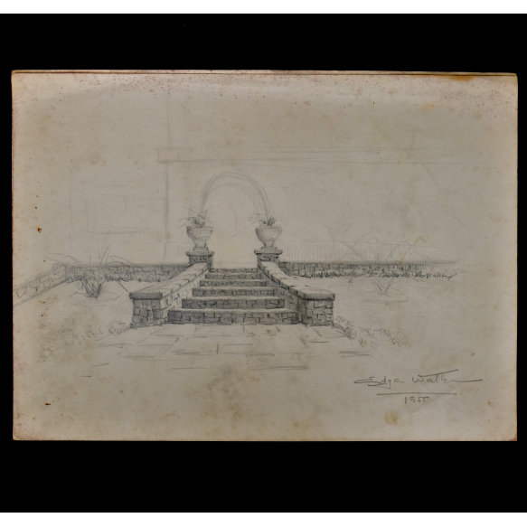EspañolEDGAR WALTER (1917 – 1994) DESENHO GRAFITE JARDIM, FIRENZE 1955. MED: 23 x 33 cm.