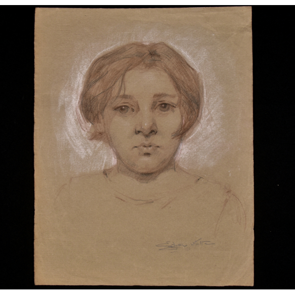 EspañolEDGAR WALTER (1917 – 1994) DESENHO CRAYON TR6ES CORES, PAPEL CANSON CINZA. ROSTO DE MENINA. DÉCADA DE 1950. MED: 31 X 24 CM.