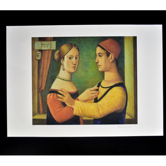 EspañolREYNALDO SERIGRAFIA P/A ASSINADA. MARCA D'ÁGUA: ARTE MAIOR GALERIA (RECIFE) (DUAS PERSONAGENS) A PARTIR DE OBRA DE 2009 MED: 47 X 66