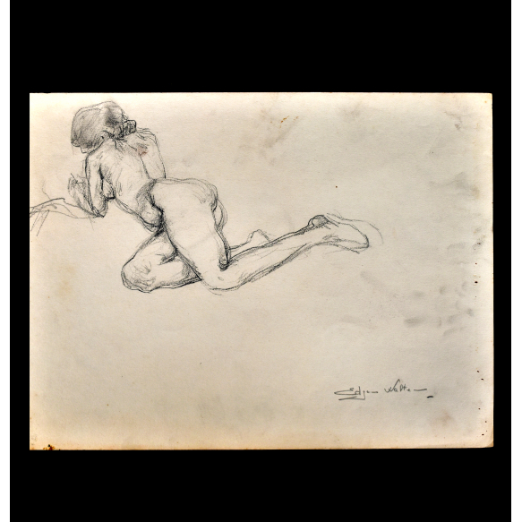 EspañolEDGAR WALTER (1917 – 1994) DESENHO MODELO VIVO MULHER NUA DEITADA DE COSTAS. ESTUDO ACADÊMICO, DÉCADA DE 1950. MED: 30 X 23 CM.