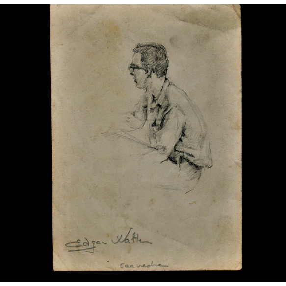 EspañolEDGAR WALTER (1917 – 1994) DESENHO GRAFITE MODELO VIVO. "SAAVEDRA"* (1/2) DÉCADA DE 1950. MEDIDAS: 16 X 12 CM * Thomaz Pinto da Cunha Saavedra ((Lisboa, 5 de novembro de1890 — Rio de Janeiro, 24 de janeiro de 1956) descendente do Barão de Saavedra (Portugal) foi amigo de artistas como Portinari, para o qual encomendou os famosos painéis da "Casa do Barão de Saavedra", Correias distrito de Petrópolis.