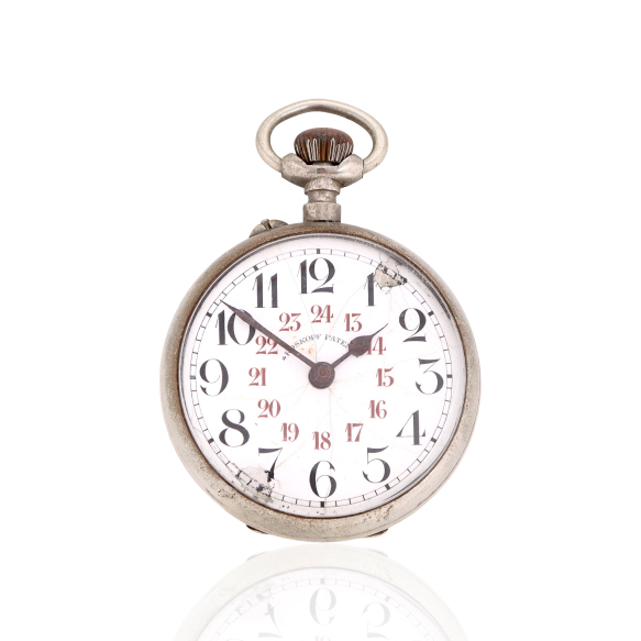 Roskopf Patent - Relógio de Bolso, caixa de metal prateado. Cerca de 56mm de diâmetro. Movimento com corda e ajuste pela coroa (pin-set). Mostrador de porcelana.