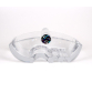 BACCARAT – Imponente centro de mesa em cristal transparente da década de 1980, assinado com o selo da prestigiada manufatura Baccarat, desenhado por Thomas Bastide, um dos mais renomados designers da casa francesa. A peça apresenta corpo ovalado de paredes espessas, com lapidação geométrica precisa que reflete a luz em múltiplos ângulos, realçando o brilho e a pureza do cristal — características marcantes do trabalho de Bastide para a Baccarat. Dimensões: Altura 14 cm × Largura 35 cm × Profundidade 23 cm