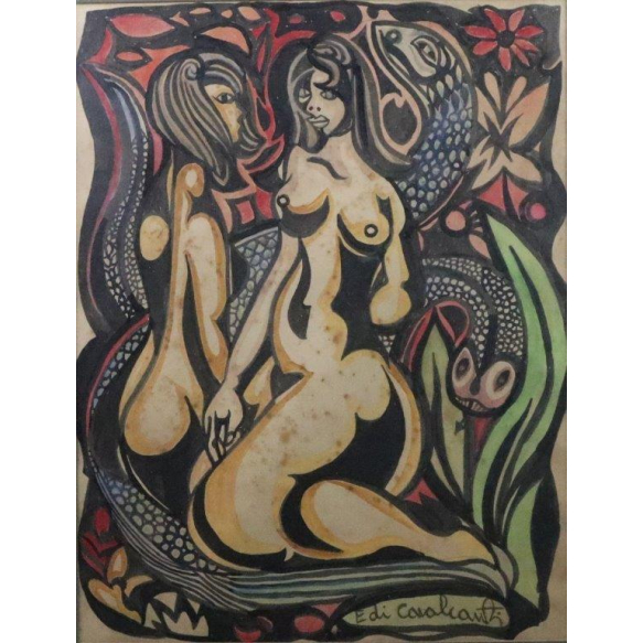 EMILIANO DI CAVALCANTI - Mulheres, s.d. (Século XX). Guache sobre papel, assinado no canto inferior direito. Composição representando figura feminina, tema recorrente na obra de Di Cavalcanti, que consagrou o artista como um dos principais intérpretes da identidade brasileira no modernismo. Dimensões: 42 × 32 cm