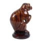 Escultura figurativa em cerâmica representando macaco em posição de observação, modelada com forte senso de volume e expressão naturalista. A superfície apresenta rica variação tonal de esmaltes vitrificados em marrom e âmbar, criando profundidade e movimento visual. A base traz selo em relevo triangular, identificando a manufatura. Dimensões: Altura 30 cm