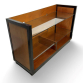 UNILABOR - Estante baixa de desenho racionalista, concebida por Geraldo de Barros para a Unilabor. Estrutura em madeira com detalhes ebanizados e prateleiras em vidro, de linhas puras e proporções equilibradas, típicas da estética modernista do designer. Dimensões: Altura 79cm x Largura 131cm