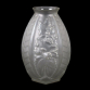 Elegante vaso em vidro opalescente do período Art Déco, apresentando rica decoração em relevo com motivos florais e folhagens. A técnica de moldagem em alto-relevo confere profundidade e movimento às formas, evidenciando o domínio técnico e a estética refinada da vidraria europeia das décadas de 1920–1930. Dimensões:: Altura 26 cm × Diâmetro 16 cm