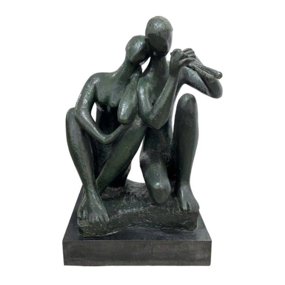 BRUNO GIORGI - Bucólica, 1951. Escultura em bronze patinado da série Bucólica, realizada em 1951 por Bruno Giorgi, um dos mais relevantes nomes da escultura moderna brasileira. A obra expressa a síntese entre figuração e abstração característica de sua produção do pós-guerra, em que volumes suavemente modelados evocam o corpo humano e a paisagem em harmonia. Essa fase marca o amadurecimento do artista, reconhecido por integrar o projeto modernista brasileiro e por obras públicas emblemáticas, como Os Candangos e Meteoros, em Brasília. Assinada na lateral direita da peça. Dimensões: aprox. Altura 81 cm × Largura 65 cm × Profundidade 44 cm (sem base). Altura 101 cm × Largura 65 cm × Profundidade 44 cm (com base)