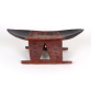 ARTE INDÍGENA WAIWAI (NORTE DO PARÁ, BRASIL)- Banco tradicional da etnia Waiwai, povo indígena do Norte do Pará, finamente entalhado em madeira e decorado com corantes naturais em padrões geométricos policromados. A peça apresenta estrutura côncava e base dupla, características marcantes da tipologia de bancos cerimoniais amazônicos. Dimensões: Altura 21 cm × Comprimento 53 cm × Largura 21 cm