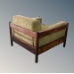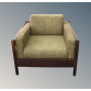 Poltrona de desenho típico do mobiliário brasileiro da década de 1970, com estrutura em madeira maciça e generoso estofamento em tecido. Dimensões: Altura 68 cm × Largura 82 cm × Profundidade 85 cm