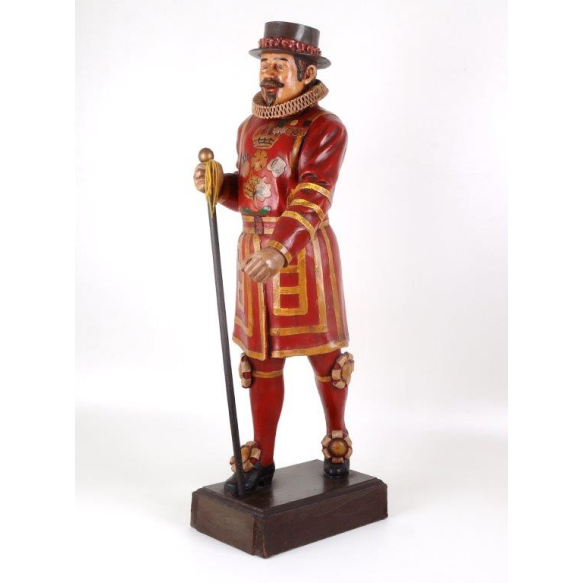 Escultura decorativa representando Guarda Inglesa , executada em resina policromada, com rica atenção aos detalhes do traje e expressão facial. Dimensões: Altura 100 cm