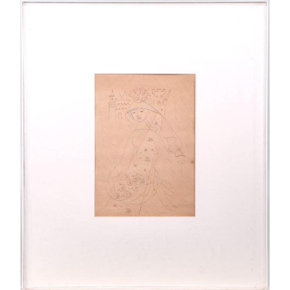 NOÊMIA MOURÃO – Figura Feminina. Delicado desenho sobre papel, representando uma figura feminina em traços fluidos e expressivos, característicos da artista. Executado com caneta, o trabalho revela a síntese entre sensibilidade e rigor formal presente na obra de Noêmia Mourão, artista cuja trajetória transita entre a pintura, o desenho, a cenografia e a escultura. Assinada no canto inferior direito (CID). Dimensões: 30 × 21 cm